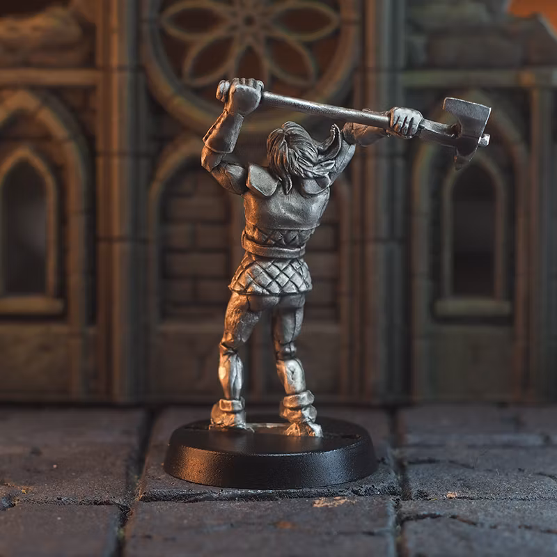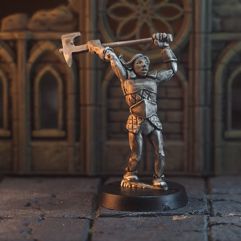 Miniature from hand-sculpted original of a female barbarian with an axe in lead-free pewter. Rotationally cast for high detail level. Comes with a 25mm base.
