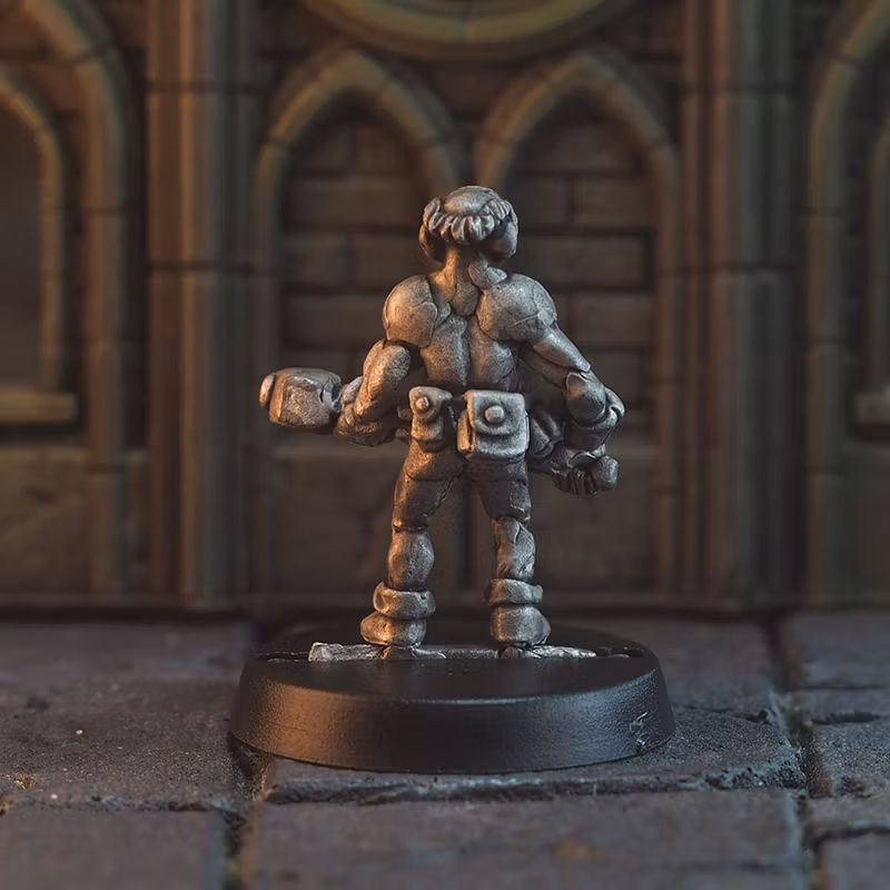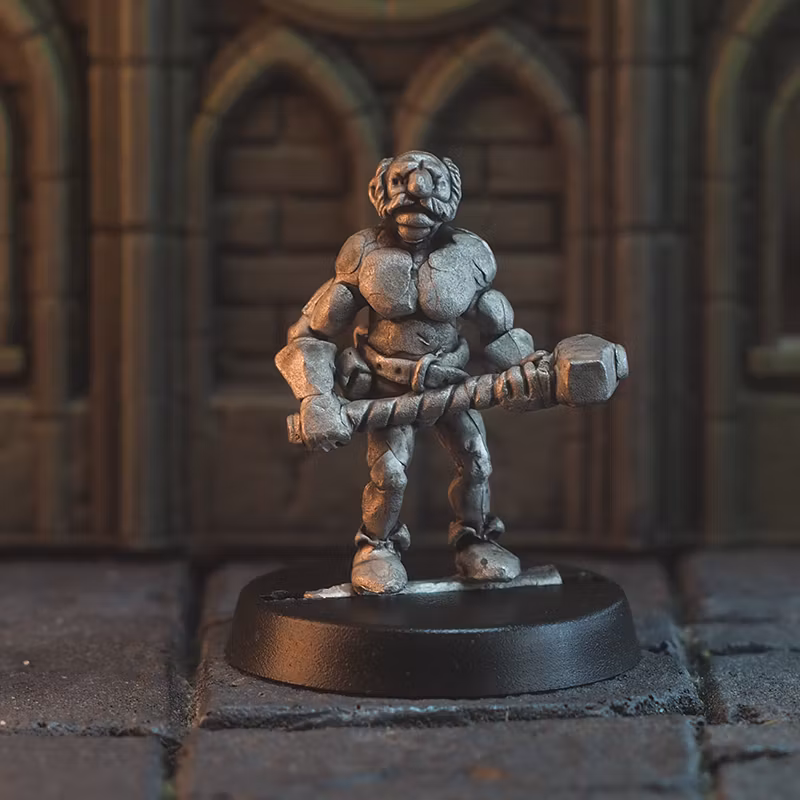 Miniature from hand-sculpted original of a dwarf warrior with a hammer in lead-free pewter. Rotationally cast for high detail level. Comes with a 25mm base.
