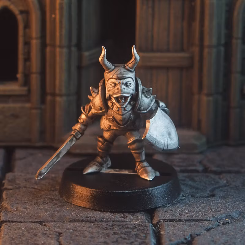 I ship worldwide. All prices in SEK (Swedish kronor). Fantasy miniature of a duck with sword and shield in lead-free pewter in 28mm scale. Rotationally cast for high detail level. Comes with a 25mm base. Works great for Drakar och Demoner, RuneQuest, Dragonbane or Dungeons & Dragons. Made by Irrbloss miniatures in Karlstad, Sweden.